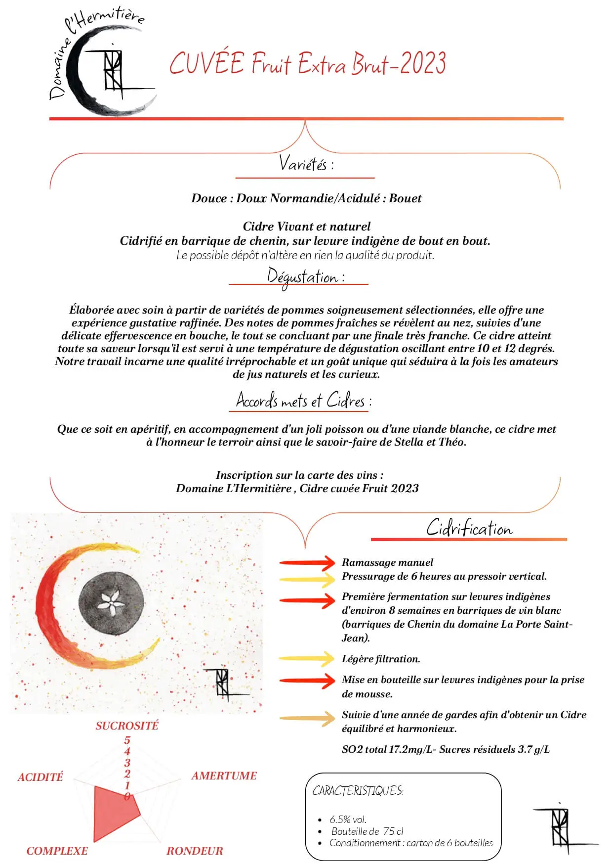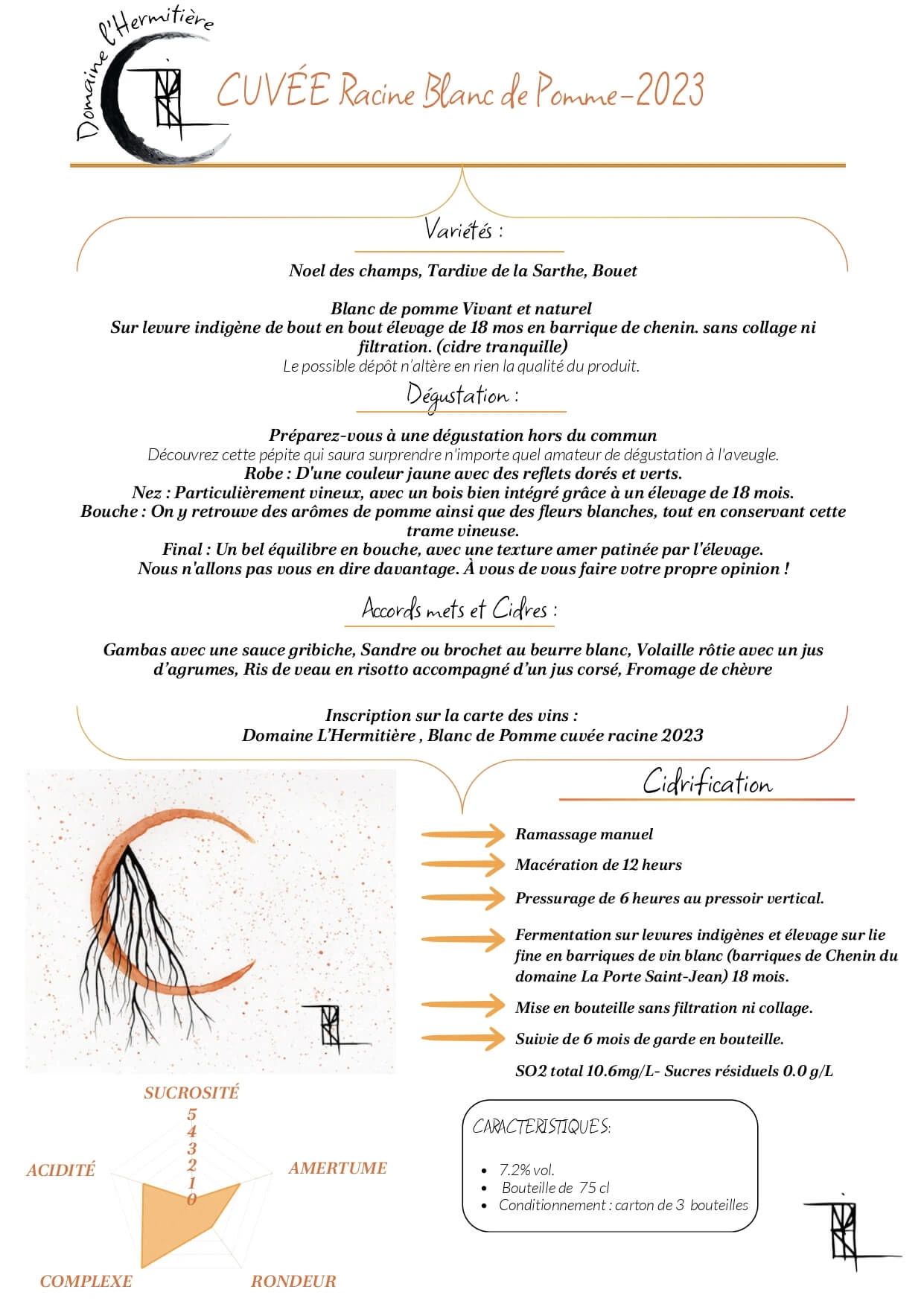 fruits à noyau et de fleurs blanches. La première  impression en bouche est franche, avec une bulle fine et légère. Le milieu de bouche est à la fois gourmand et bien structuré. La dégustation