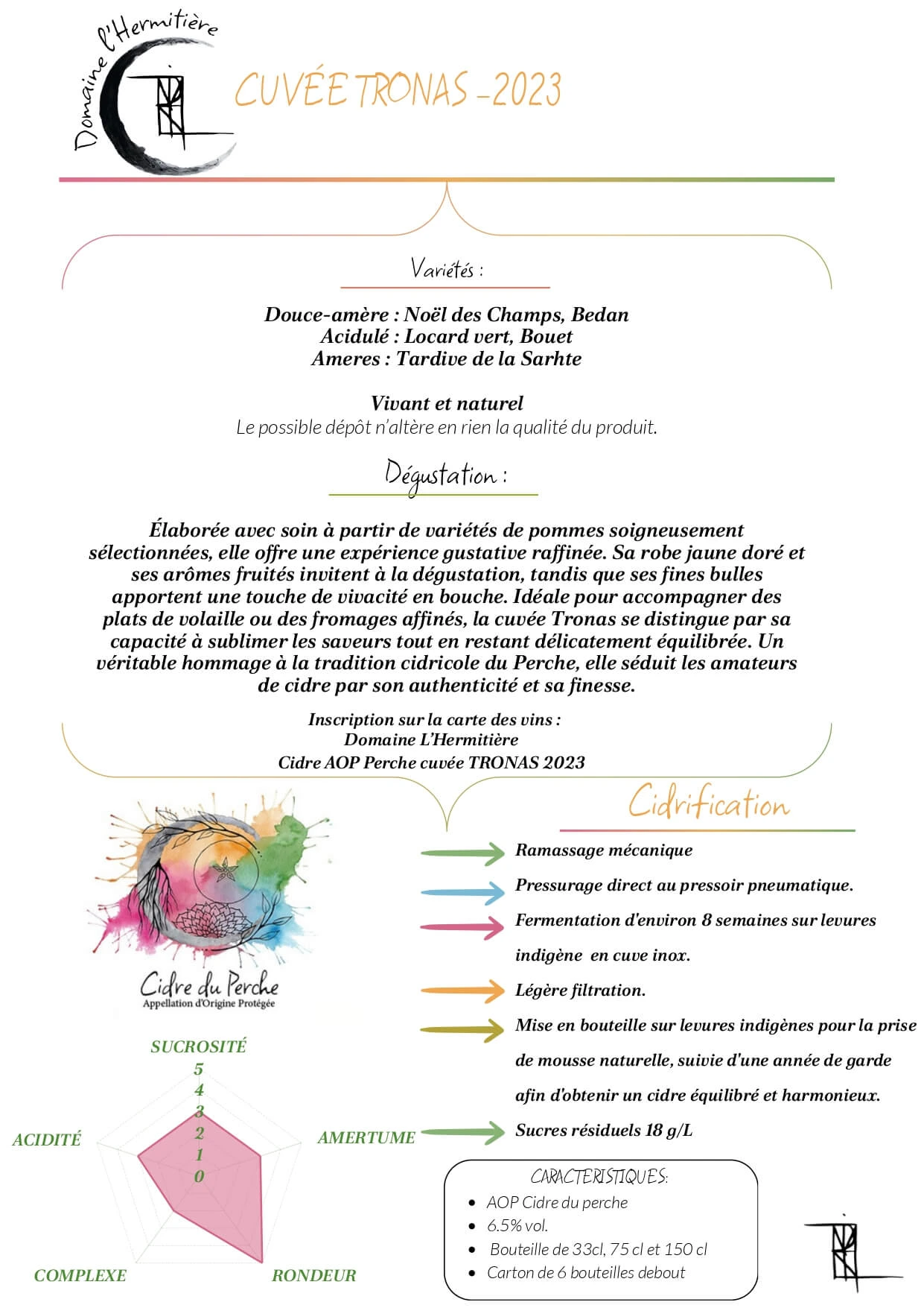 Élaborée avec soin à partir de variétés de pommes soigneusement sélectionnées, elle offre une expérience gustative raffinée. Idéale pour accompagner des plats de volaille ou des fromages affinés, la cuvée Tronas se distingue par sa capacité à sublimer les  saveurs tout en restant délicatement équilibrée.